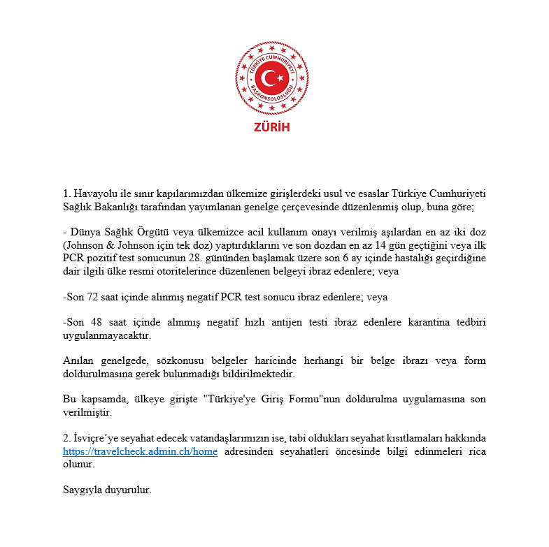 Ülkemize giriş tedbirlerine ilişkin duyuru
