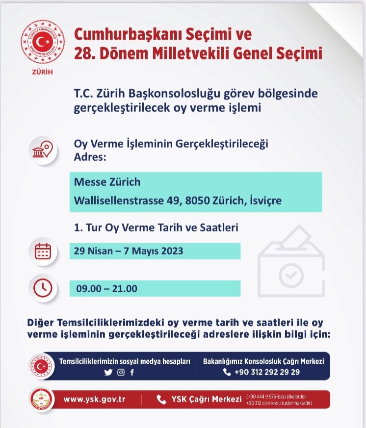 Cumhurbaşkanı ve 28. Dönem Milletvekili Genel Seçiminde Başkonsolosluğumuz görev bölgesinde kurulacak sandıklara ilişkin mekan, tarih ve saat bilgileri hakkında duyuru